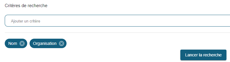 Par défaut, les critères sélectionnés sont Nom et Organisation.