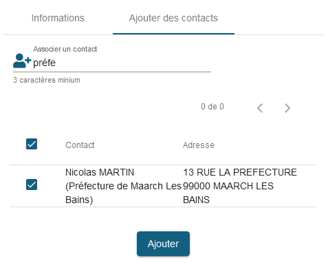 Sélectionner un ou plusieurs contacts puis cliquer sur ajouter.