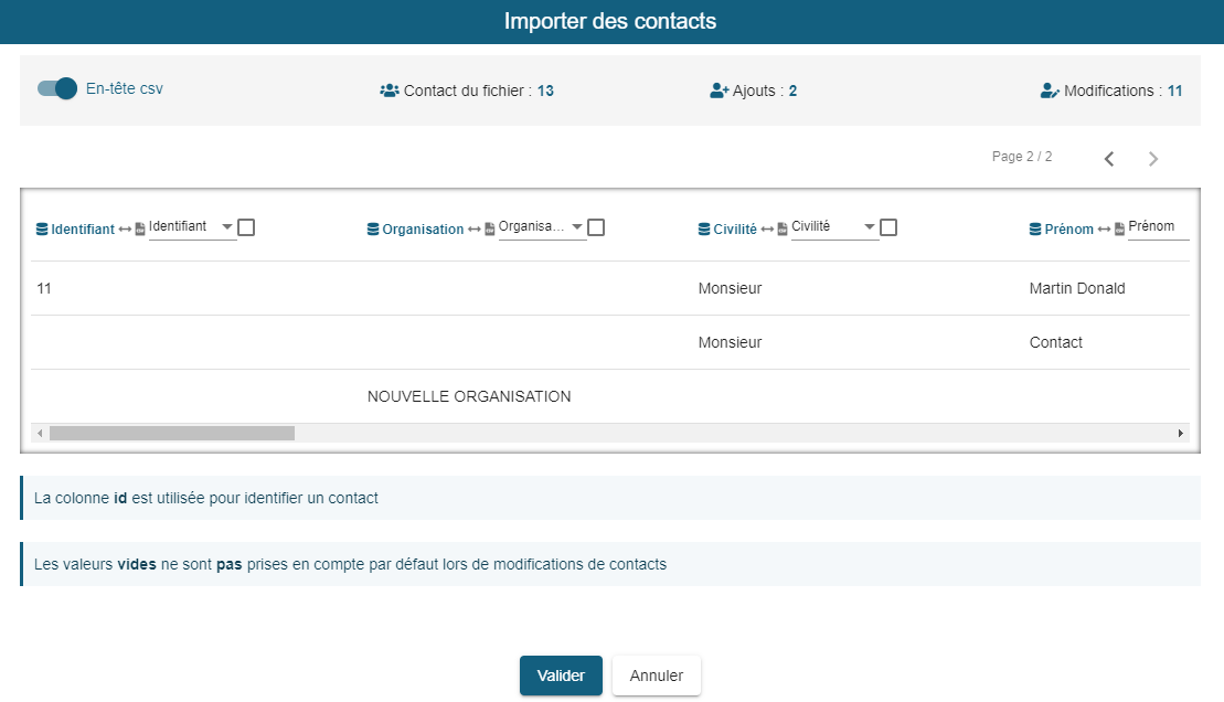 Permet d'importer des nouveaux contacts ou de mettre à jour des contacts existants