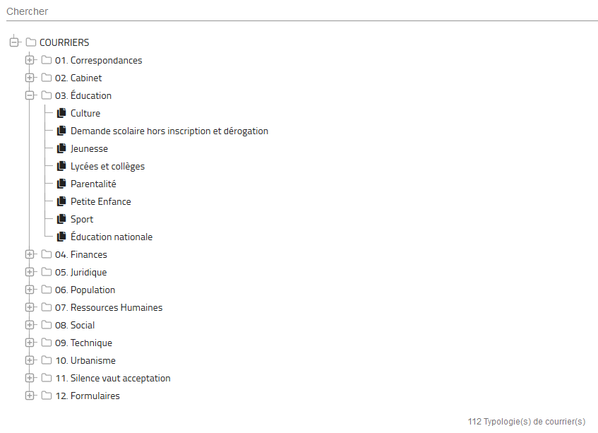 écran d'administration des typologies de courriers