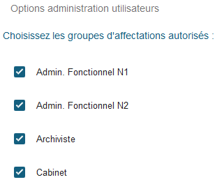 Si activé, la fonctionnalité sera administrable par les membres du groupe via l'écran "Administration"