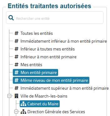 Lors de l'enregistrement de courrier, l'utilisateur ne pourra attribuer le courrier qu'aux entités sélectionnées.