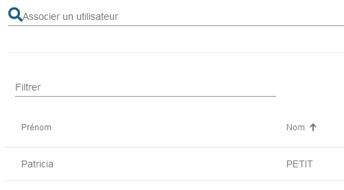 L'onglet présente la liste des membres du groupes et permet d'y associer directement des utilisateurs.