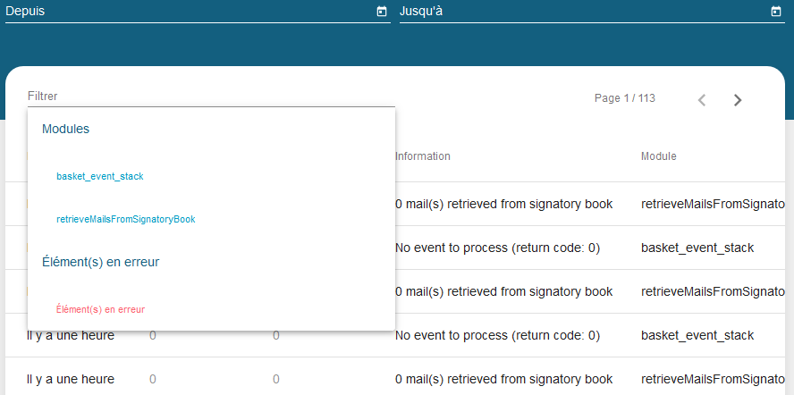 Cet écran présente le résultat d'exécution des batchs de Maarch Courrier.