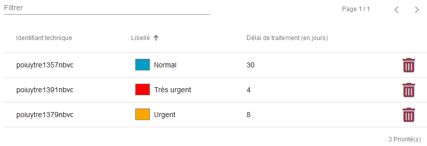 | Libellé | Libellé de la priorité | |