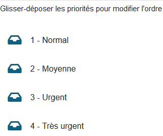 Il est possible de modifier l'ordre d'apparition des priorités dans les listes de choix :