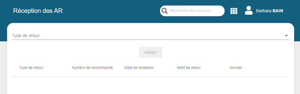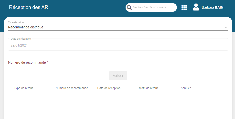 Interface d'enregistrement des accusés de réception