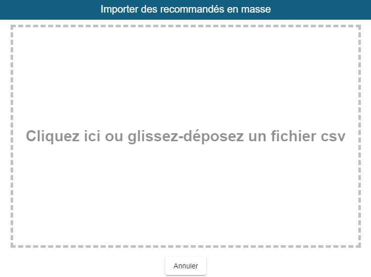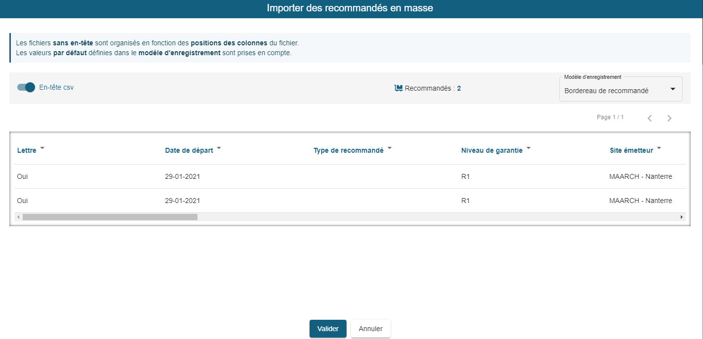 Interface d'importation en masse de bordereaux de recommandés