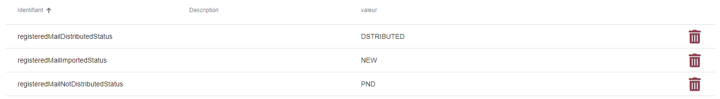 registeredMailDistributedStatus Identifiant du statut dans lequel passeront les bordereaux de recommandés distribués. Renseigner un Identifiant de statut.