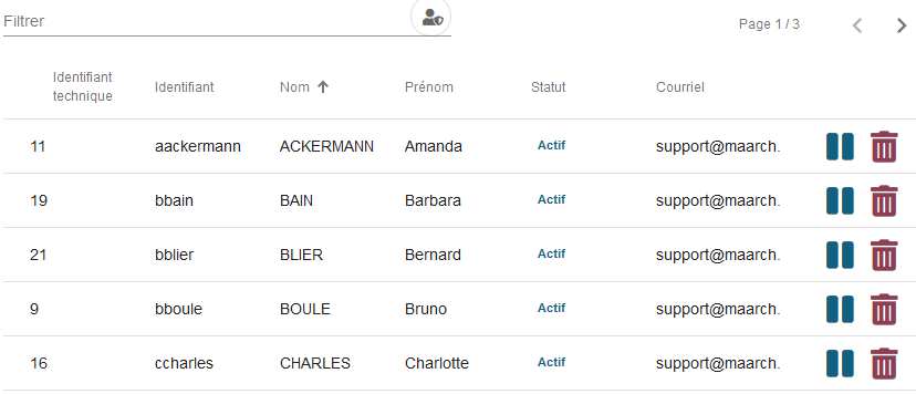 Afficher les comptes de service (accès via API REST de Maarch Courrier) |