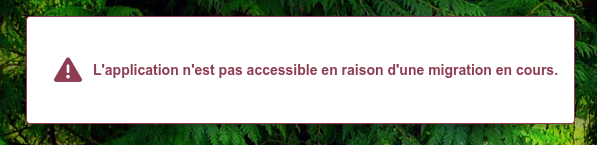 Pendant la migration l'utilisateur est automatiquement déconnecté avec un message d'information et l'application est inaccessible le temps de la migration. À la fin du processus l'utilisateur doit se reconnecter.