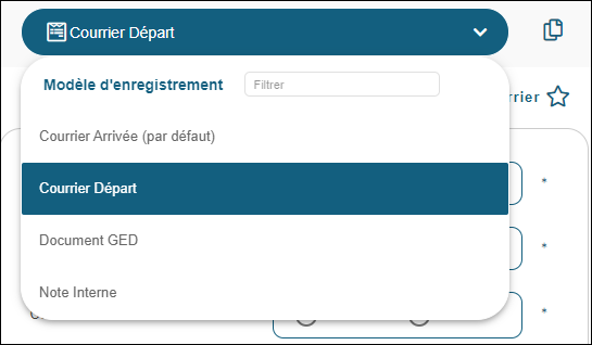 Il est possible de paramétrer autant de modèles d'enregistrement (formulaires) que nécessaires (Arrivée, Départ, Interne, Document, Note interne...) : l'écran de saisie s'adapte dynamiquement en fonction de ce dernier.