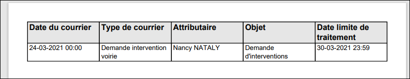 Depuis la fiche détaillée ou de traitement d'un courrier, il est possible d'imprimer le dossier d'impression.