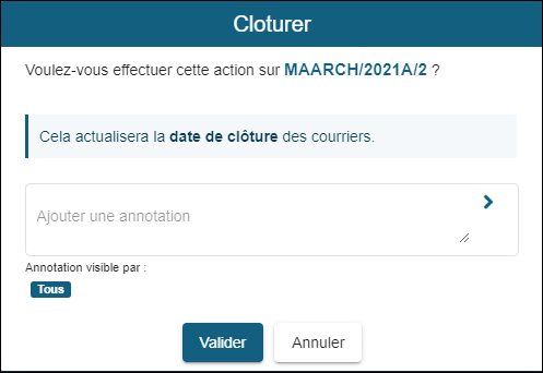 La clôture a pour effet d'inscrire une date de traitement sur la fiche courrier.