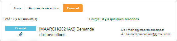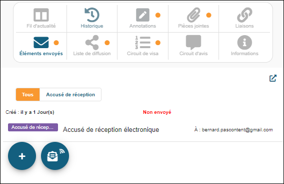 Une fois le courrier envoyé, l'action "Acter l'envoi" le replace dans la bannette des courriers à traiter.